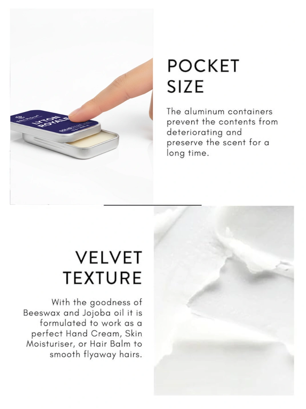 Why switch to a solid perfume? Lyton Royale offers a superior sensory experience compared to traditional alcohol-based sprays: