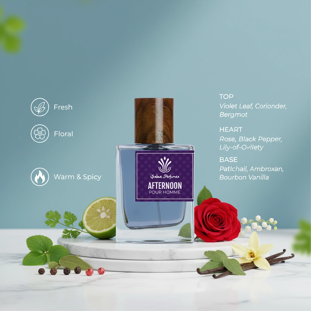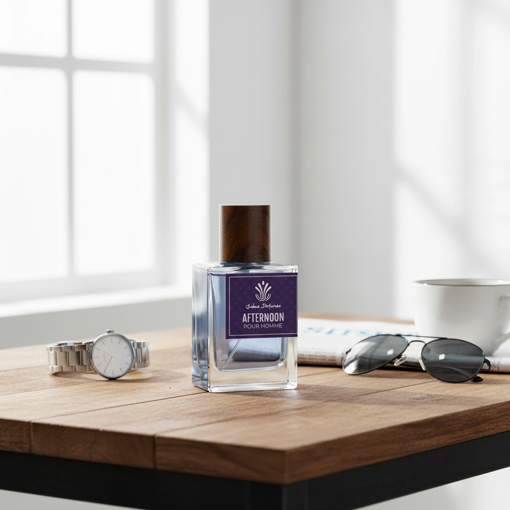 Afternoon Pour Homme captures the clean, radiant light of the "Golden Hour." It is a sophisticated, masculine fragrance that speaks of luxury and effortless style.