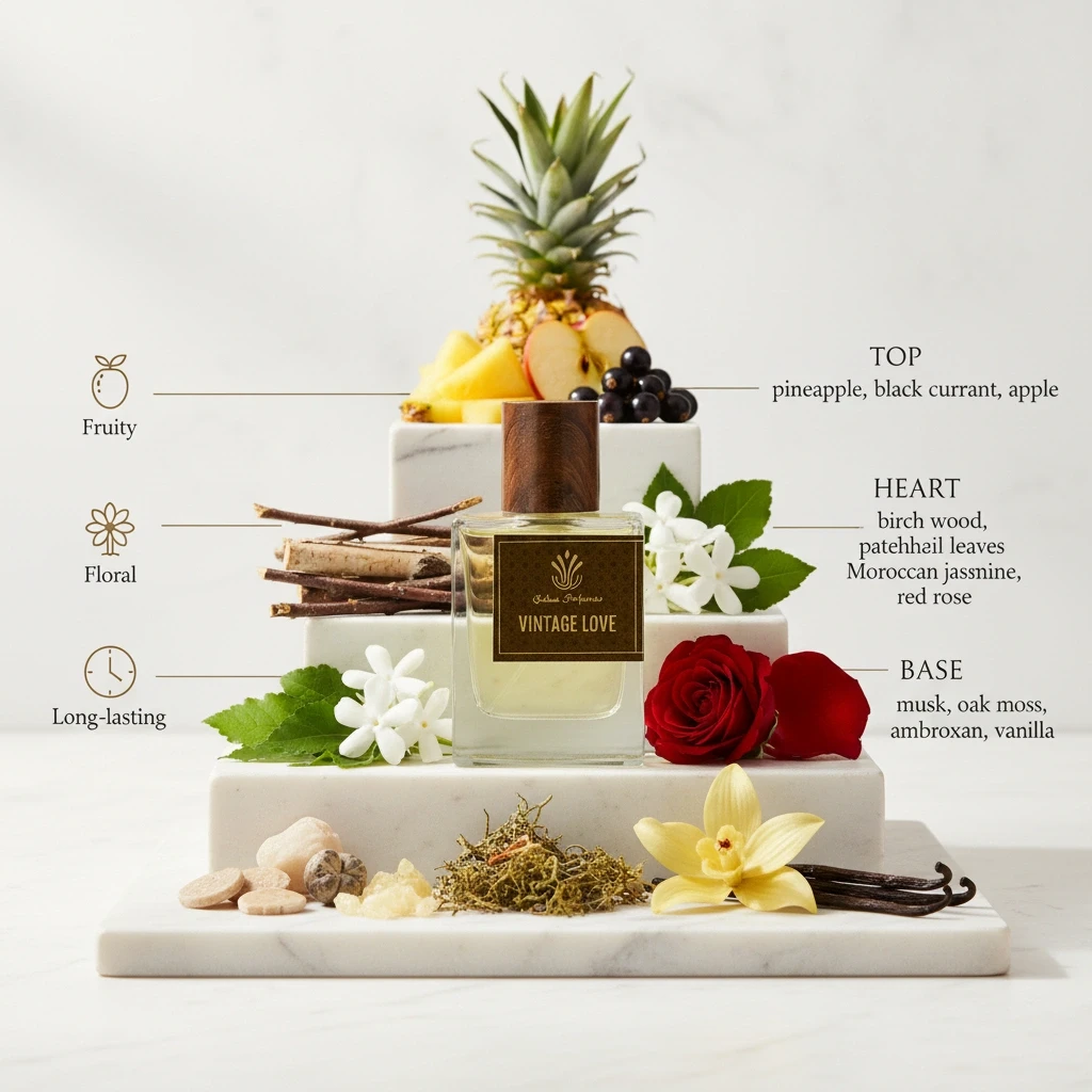 Rediscover the art of classic perfumery with Vintage Love Eau De Parfum. A true masterpiece of balance, this unisex fragrance bridges the gap between tropical vibrancy and earthy sophistication. It is designed for the individual who transcends trends, opting instead for a signature scent that is as enduring as a timeless romance.